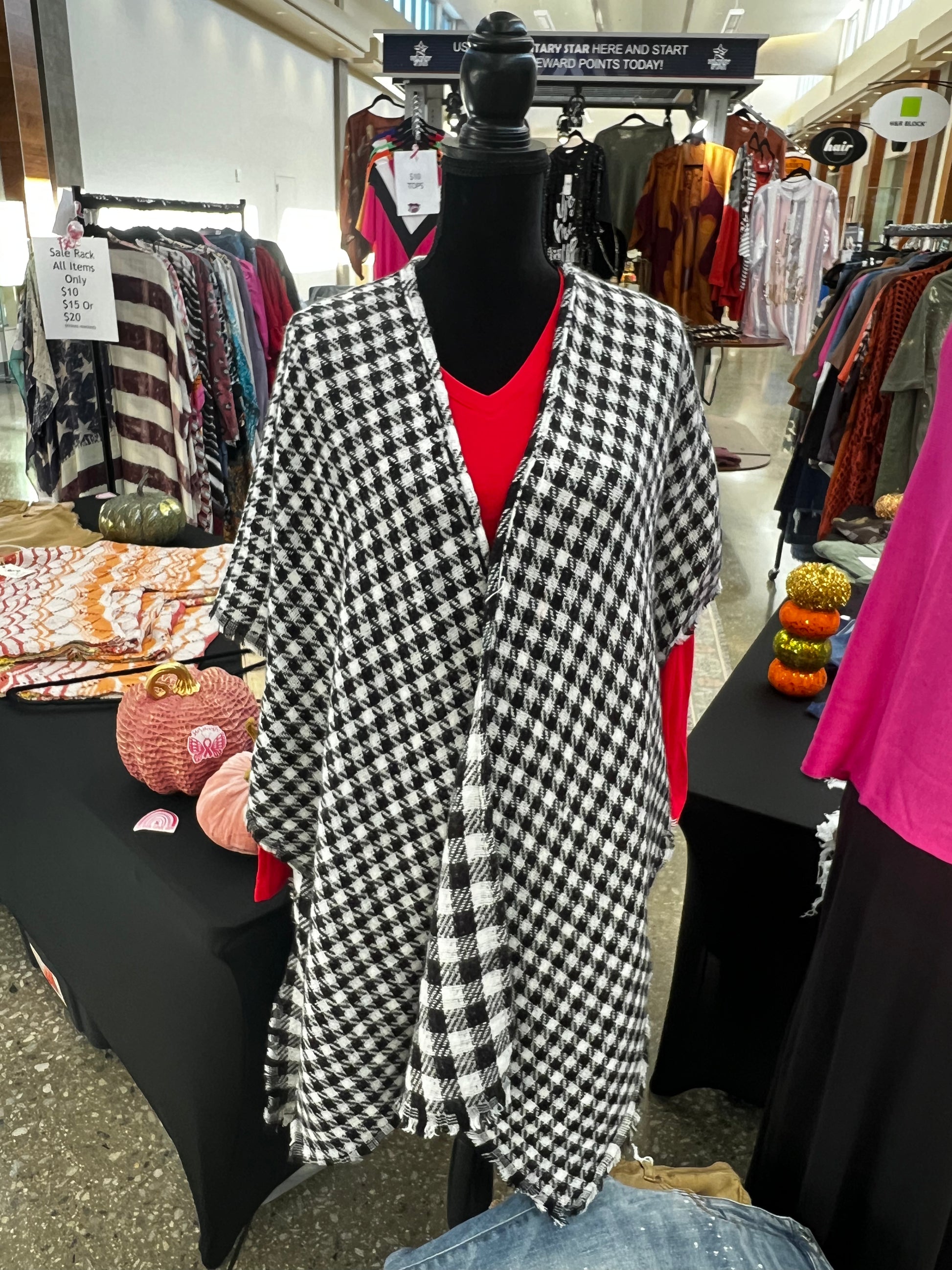 Black & White Reversible Buffalo Plaid Kimono
